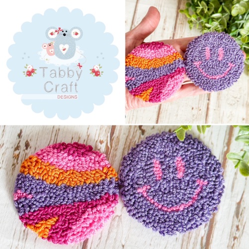 Punch Needle Smiley Face Car Mug Rug Set - Purple/Multi £10.00 Quantity: at £10.00 each Add To Basket