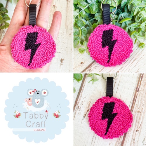 Punch Needle Lightning Bolt Bag Charm - Black and Pink